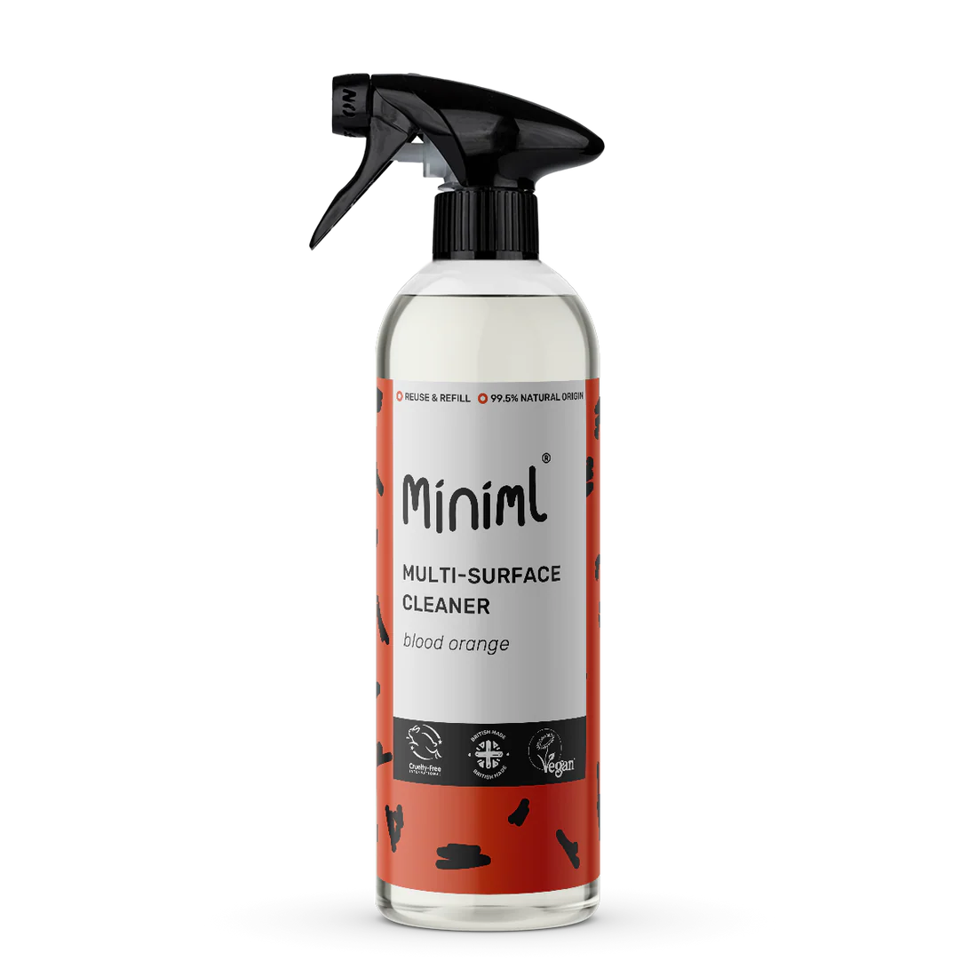 A 750ml starter bottle or 1L refill pouch of Blood Orange multi-surface cleaner from Miniml.